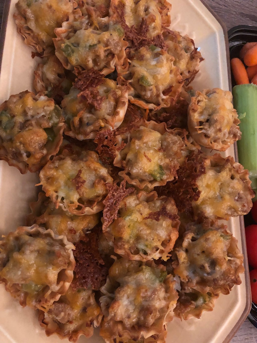 Another week of football action meant that it was time to try some new game time snacks! I’d always wanted to try to make sausage wontons but when I went to the grocery store, there was not a wonton wrapper to be found. So I figured phyllo pastry cups would make a good substitute (plus make things a bit easier to put together).
