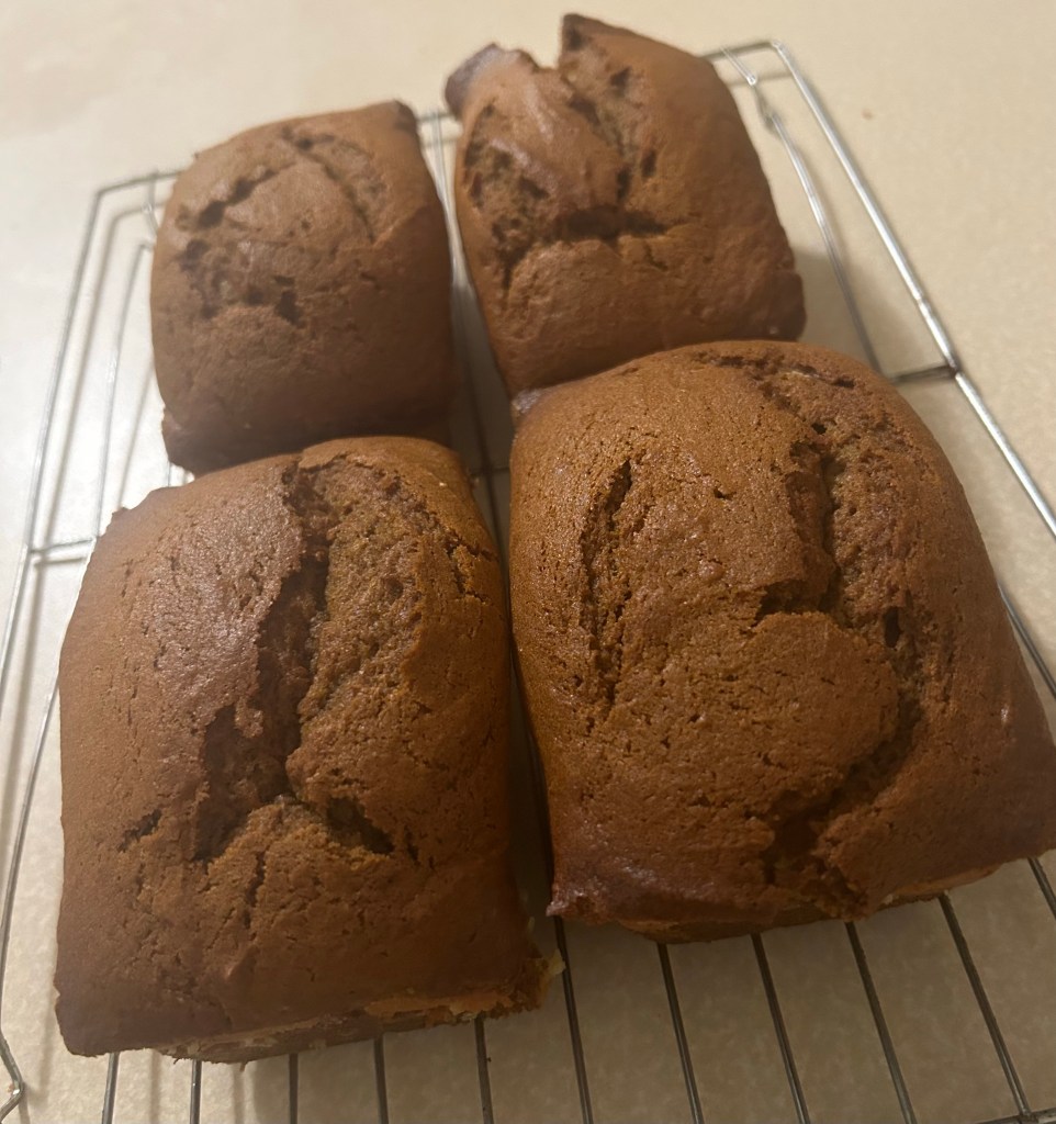 Bake about 70 minutes or until toothpick comes out clean (if you’re using mini loaf pans, reduce baking time to about 45 minutes)