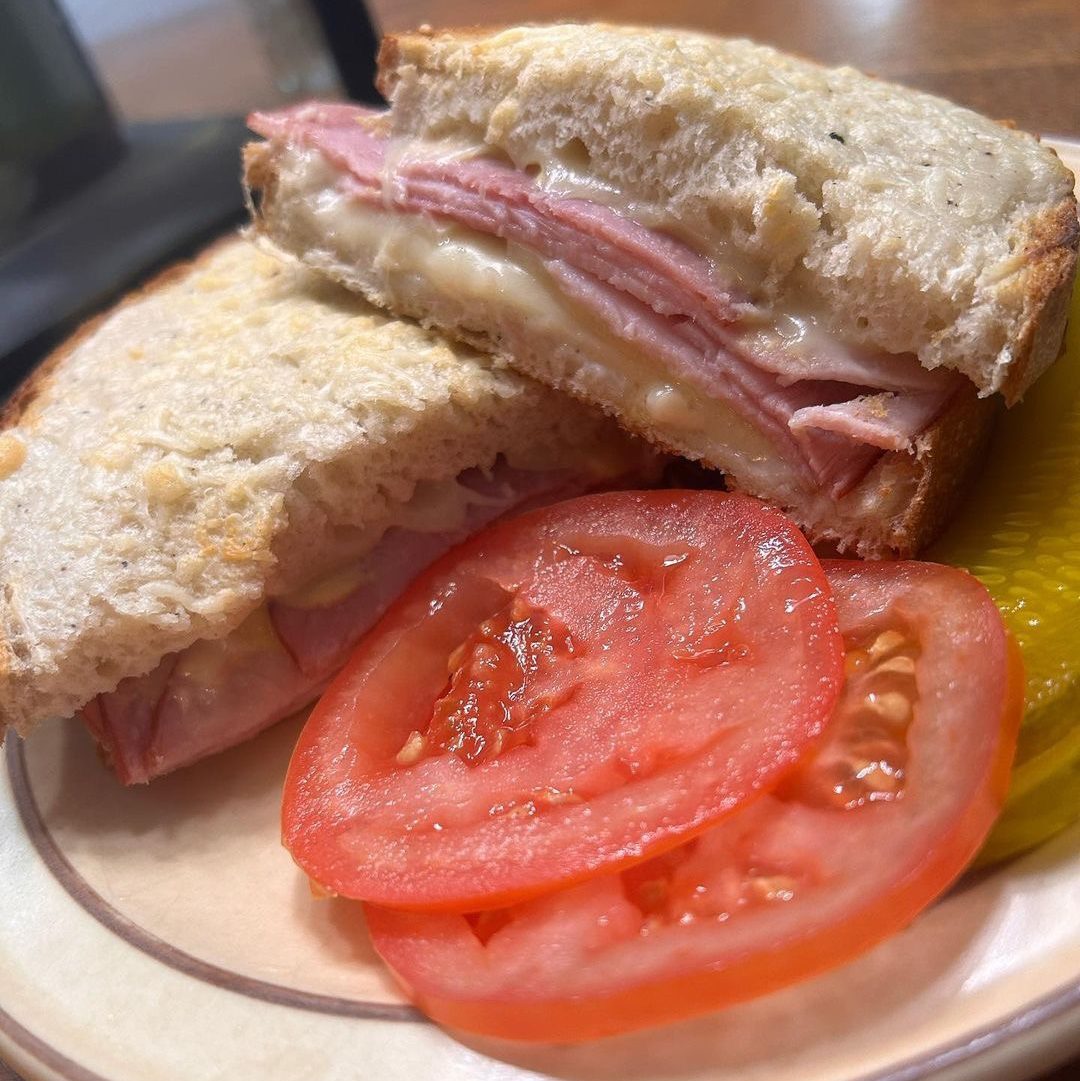Grilled Croque Monsieur sandwiches using a spread of the béchamel (mixed with a good handful of parmesan cheese) on thick sourdough bread, ham and gruyere cheese.