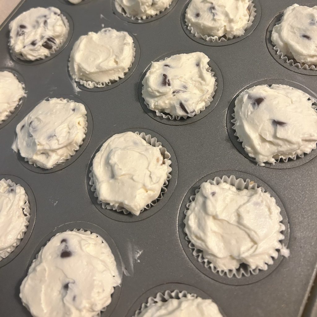 - Mix together the crushed cannoli shells and melted butter. Press into the bottom of each muffin cup.