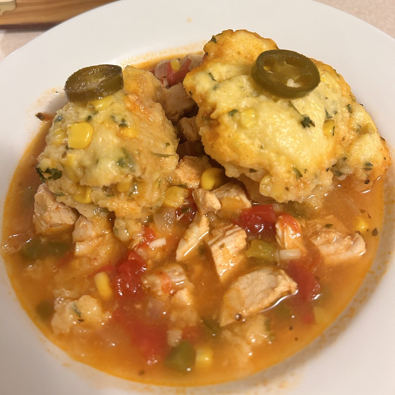 Hearty Chicken Stew with Corn Dumplings: A Cozy One-Pot Meal!
