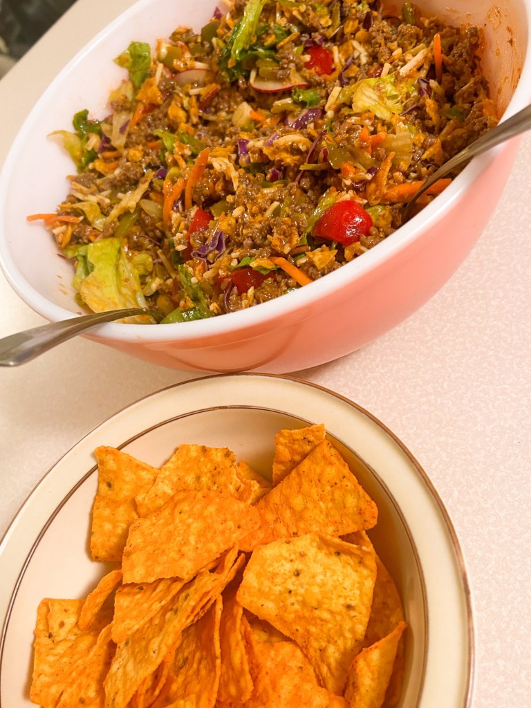 This taco salad has popped up everywhere in its walking taco version at concession stands and food trucks. But this? This is the full-on dinner edition (and it never fails to satisfy!)