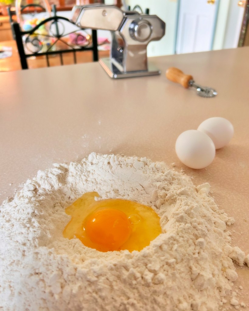 I don’t have a drop of Italian blood in me, but cooking Italian food brings me such absolute joy. Maybe it’s the comfort, maybe it’s the aroma that fills the house or maybe it’s just the excuse to pour a glass of wine while the sauce simmers. Since we were saddled with a weekend of rain (and yes, snow) last week, I could think of no better way to bring a little happiness to the table than a big pot of homemade Bolognese with freshly made pasta. Pure comfort in a bowl! (But my pasta maker may have met it’s demise)