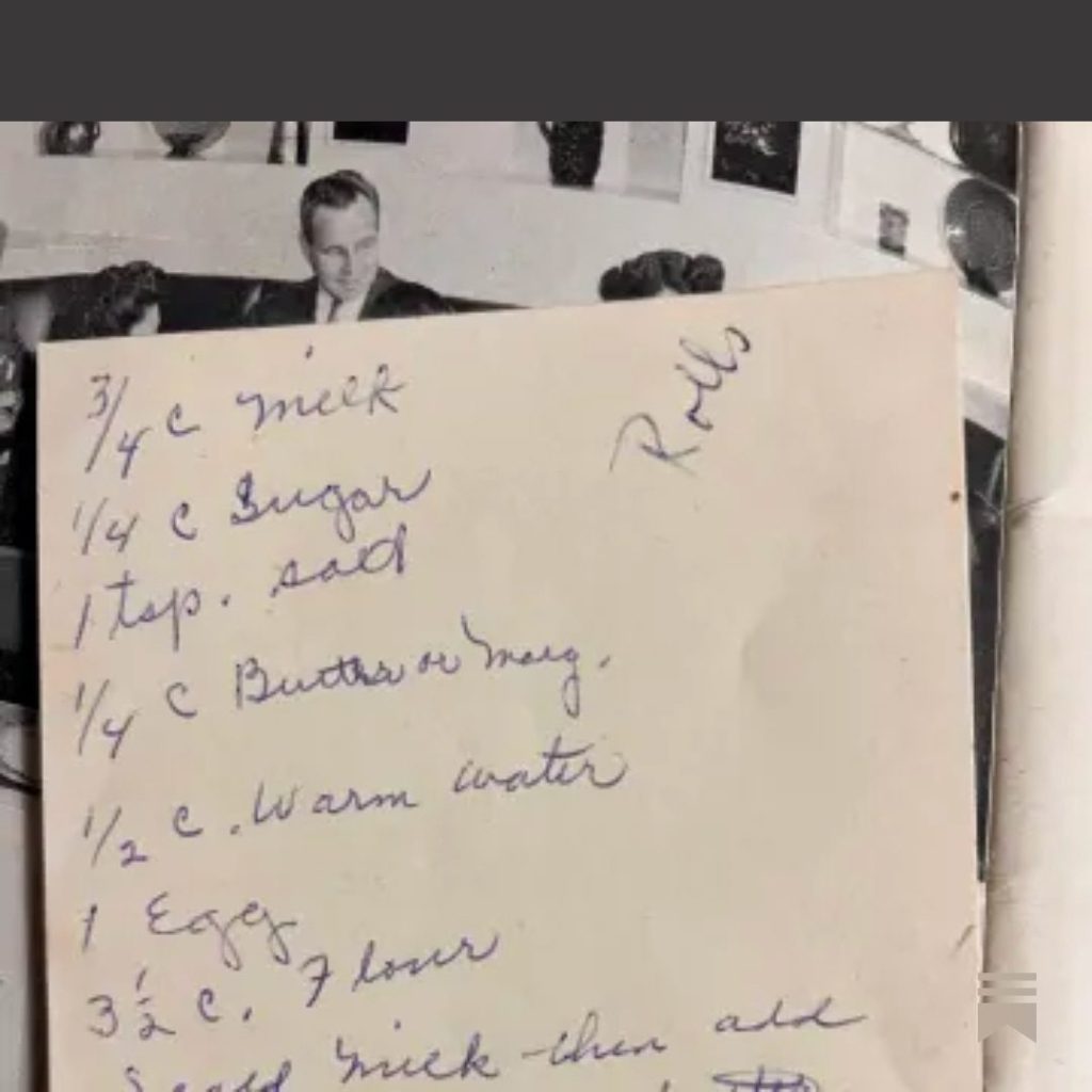 I was hunting for Christmas recipes this weekend and pulled out a small book from 1945. Out fell a piece of my grandmother’s world – a worn piece of paper where she’d written her version of a recipe for dinner rolls. Not a week before I was standing in the grocery store lamenting (maybe vocally) how hard it was to find plain, old fashioned dinner rolls. The staple of dinners for as long as I can remember. But you know baking and I have a long and storied love/hate relationship. Well challenge accepted. I knew if I tried it, she’d be watching from above. And it stood the test of time!